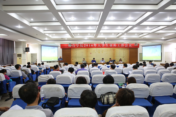 6月2日下午,我校2016年大学生征兵工作会议在图书馆报告厅召开。会议由党委书记李相佑主持,校长王建勋,副校长崔社军,党委常委徐惠敏,桥东区武装部部长赵华出席会议。学校武装部、学生处、财务处、教务处、招生就业处主要负责人,各二级学院(系部)书记、副书记、学管主任、团委书记、辅导员参加了本次会议。