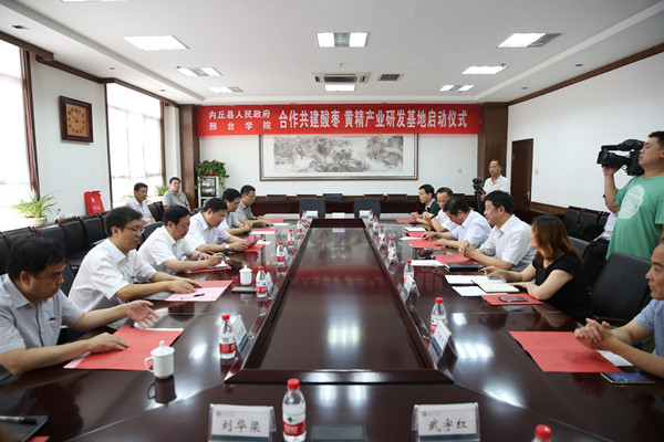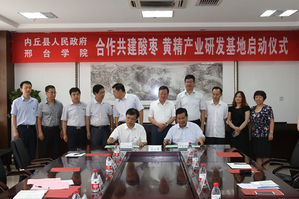 在签约仪式上,校长王建勋与内丘县县长李晓波分别代表双方签订了《合作共建酸枣、黄精产业研发基地协议书》。协议约定,双方将在内丘县酸枣、黄精产业研发基地建设;酸枣、黄精新品种选育、优质丰产栽培技术及精深加工关键技术研究;酸枣、黄精产业科技人才培养;制定内丘县酸枣、黄精产业发展规划等方面加强合作。