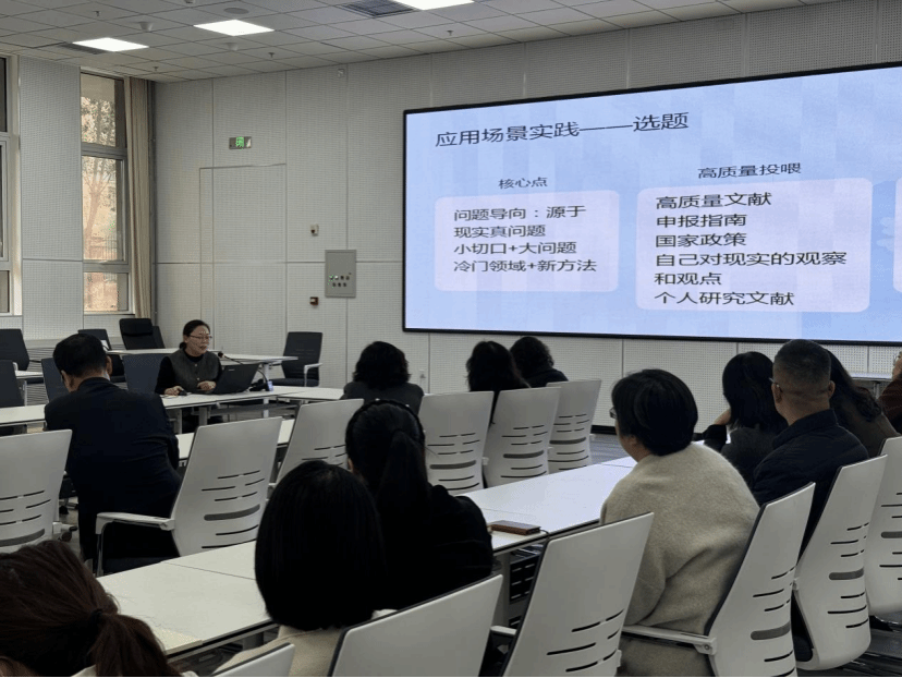 座谈会后,科研处宋晓奎老师详细解读了河北省教育科学“十四五”规划课题类别设置、申报流程及材料规范等核心内容,为申报人厘清操作路径;同时着重强调学术诚信是科研工作的生命线,明确失信行为的惩戒机制,引导全体科研人员坚守学术操守,确保课题研究的规范性与严肃性。