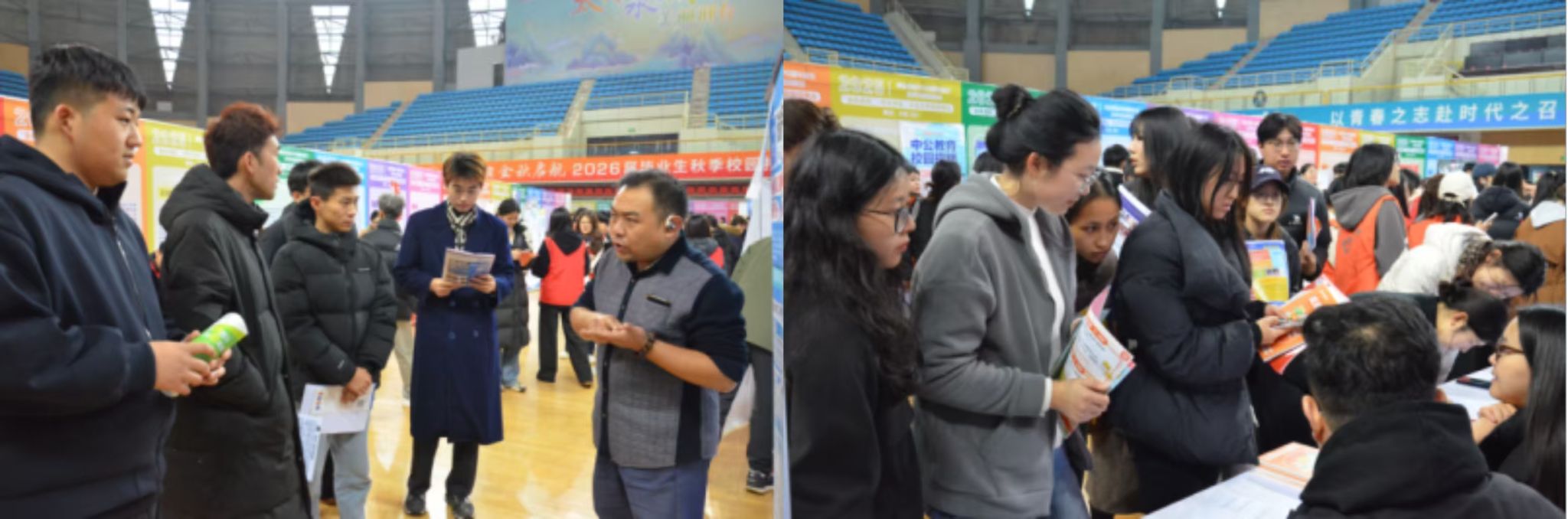 11月8日上午,“金秋启航”2026届毕业生秋季校园招聘会在我校体育馆举行。作为年度就业服务的重要活动,本次招聘会汇聚了教育、科技、金融、制造、文化创意等领域的200余家知名企业,提供超过5800个优质岗位,吸引约4000名毕业生到场咨询,现场达成初步就业意向约1100人。
