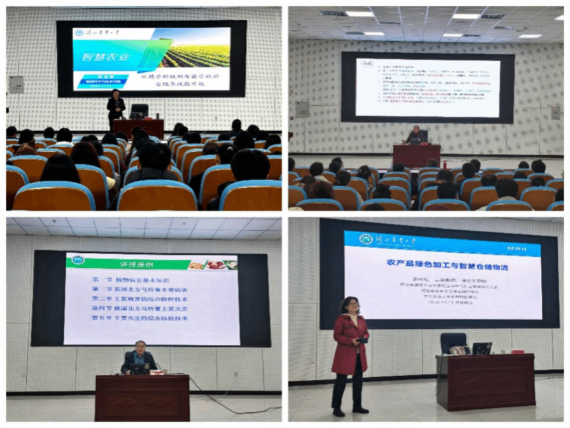 校党委高度重视此次研修活动,在前期准备、讲座安排、师资与课程等方面进行了精心安排与部署。研修班上,来自中国农业大学资源与环境学院生态系博士生导师魏雨泉副教授,河北农业大学张彦萍教授、苑迎春教授、王向红教授、杨志辉教授等知名教授及行业专家,聚焦国家乡村振兴战略及河北省农业现代化政策要求,针对传统农业技术滞后、管理粗放等行业痛点,重点围绕高效种植技术集成与实践案例、智慧农业全链条赋能升级、农产品绿色加工与智慧仓储物流、病虫害绿色防控技术、微生态制剂与生态循环农业创新等五大核心模块展开,结合最新政策理论、科学研究成果、典型实践案例为学员们进行了经验分享和详细解读。参训学员纷纷表示,此次研修内容兼具理论高度与实践价值,既明晰了行业发展方向,又掌握了实用技术方法,搭建了高效交流合作平台,将积极运用所学推动生产实践,助力农业提质增效。