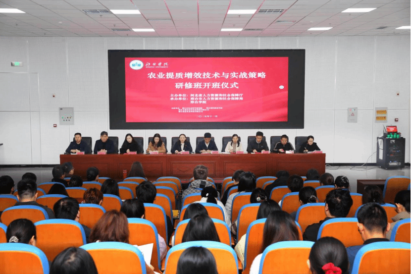 11月10日至13日,河北省农业提质增效技术与实战策略研修班在我校举办。研修班由河北省人力资源和社会保障厅主办,邢台市人力资源和社会保障局与我校联合承办。来自省内科研机构、高校、农业企业、合作社及相关单位的学员100余人参加培训。副校长张盈利出席活动并致辞,人事处、科研处及化学工程与生物技术学院相关负责人参与活动。