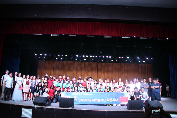 晚上7:30,在我校音乐厅举办了文艺演出,韩国全北大学学生和我校学生共同为大家带来了精彩的表演。整个晚会高潮迭起,我校学生表演的《国学经典诵读》展示出中国文化的博大精深,津巴布韦留学生们以流畅的中文演唱《月亮代表我的心》和充满民族风情的《茉莉花》,展示了在我校汉语学习的教学成果,韩国全北大学学生表演的街舞、扇子舞等韩国民族特色舞蹈,将晚会推向了高潮。中外学生同台演出,“混搭”而和谐,整台晚会体现出中外文化融合。