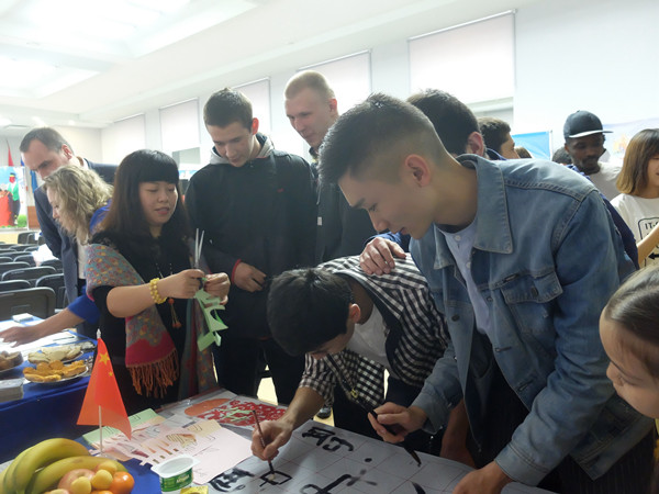 5月26日,俄罗斯西伯利亚国立航空航天大学开展2016年度国际文化交流活动。参加此次活动的有中国、英国、印度、刚果、捷克等九个国家的老师和交换学生。我校在俄师生经过半个多月的精心准备,展示了毛笔书法、茶艺、剪纸、十字绣等中国悠久的传统文化,还制作了饺子、肉丸等典型的中国食品。李虹老师用俄语演唱《喀秋莎》、学生们表演了手语舞蹈《国家》并演唱了歌曲《北京欢迎你》,获得大会一致好评。经综合评定,我校师生组成的中国代表队被评为2016年度国家文化展示一等奖,并获积极组织奖。